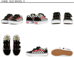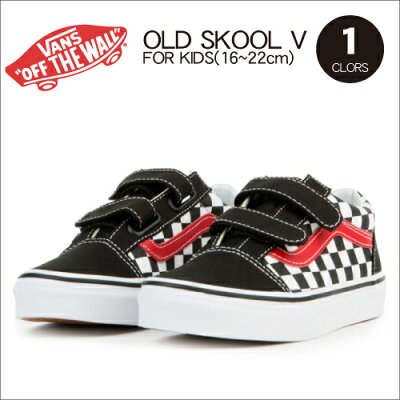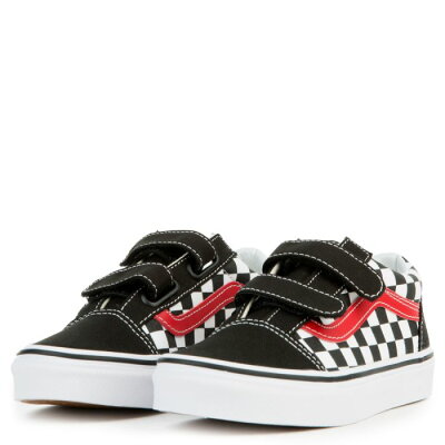 【 VANS OLD SKOOL V KIDS (CHECKERBOARD) BLACK/RED/TRUE WHITE バンズ オールドスクールV [USA企画] 】スニーカー キッズ ベルクロ マジックテープ 子供用 定番 ヴァンズ 黒 白 人気 OLD SCHOOL 夏 夏休み 旅行 散歩 運動靴